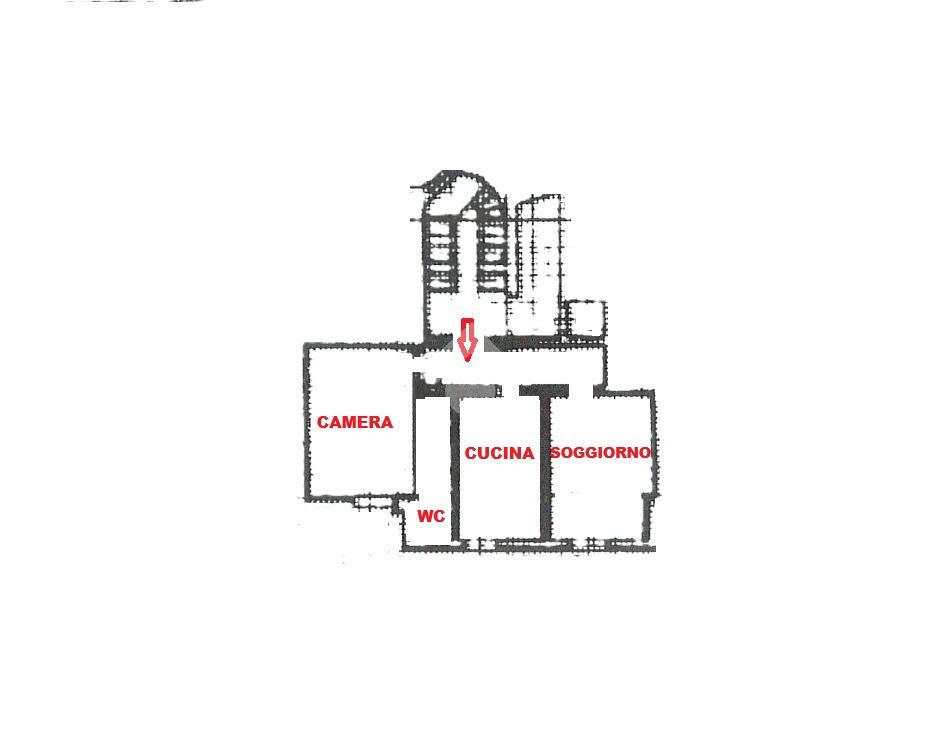 In elegante stabile d’epoca, luminoso piano alto con cantina. Ampio bilocale con concreta possibilità di trasformazione in trilocale, ideale per massimizzare il valore futuro dell’immobile.